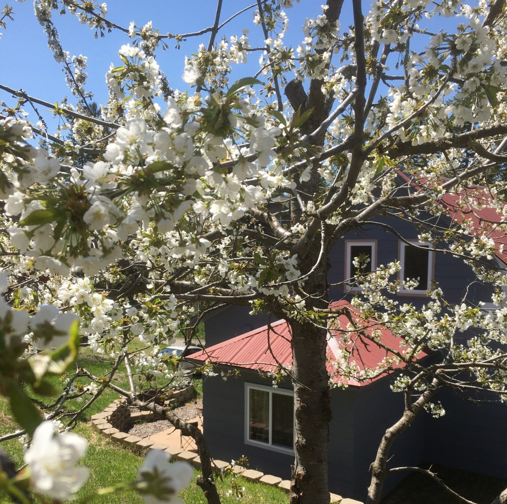 I couldn’t resist pushing toward that small square of light and air. I was in luck. Dad was feeling relatively good when I showed up and was game for getting out of bed. Once up, I carefully led him down the hall. Brighter and brighter came the door’s rectangle window leading to the patio. To air, dear father, to air. We stepped over the threshold and the weak Spring sun fell on our faces. It was warm and sweet – not too hot, not too cold. We shuffled until we found a pair of sturdy deck chairs. We sat and faced the sun.
